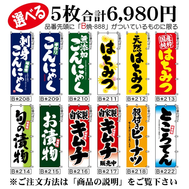 【送料無料-選べる5枚セット】こんにゃく のぼり旗|天然はちみつ キムチ 他11種|手書き筆文字[b5-009]