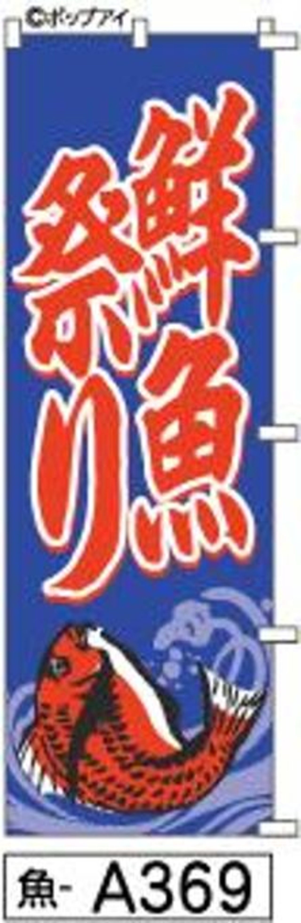 鮮魚祭りののぼり【魚A369】は、魚屋さんやスーパーの鮮魚コーナーに最適なアイテムです。商標登録番号6807113を取得した当店独自のオリジナルデザインで、手書きの筆文字が特徴。水産業のイメージにぴったりな青色に波模様をあしらい、目を引く存在感があります。