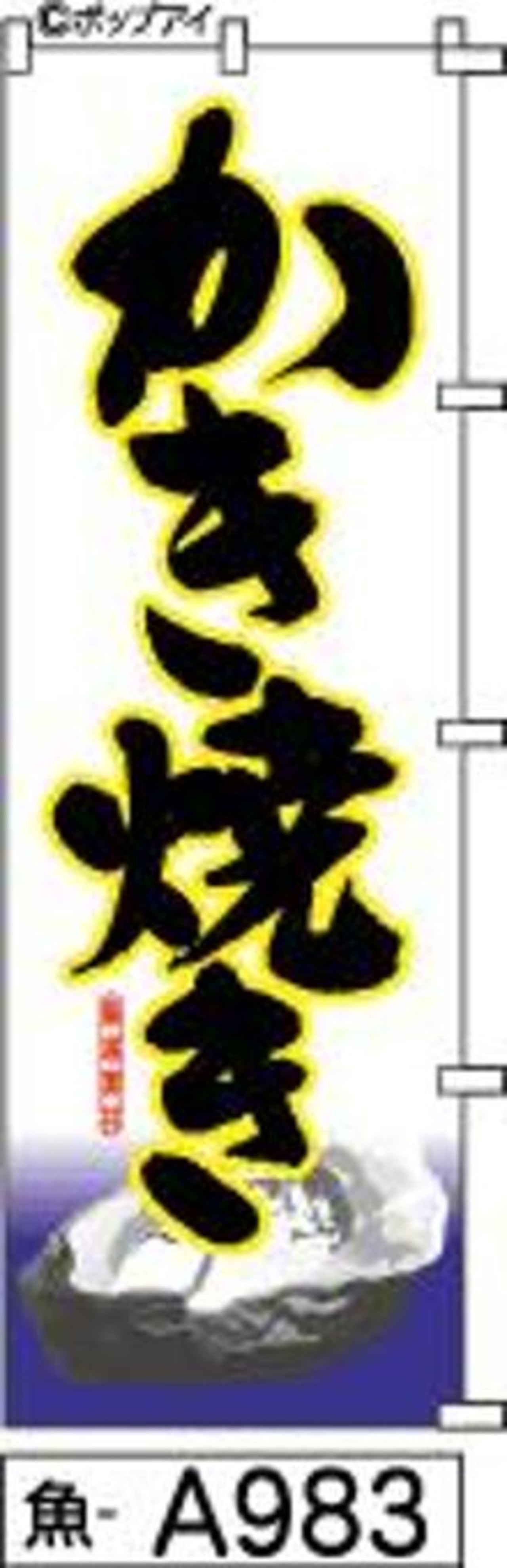 「のぼり【かき焼き】白地に黒の筆文字[魚A983](商標登録番号6807113)」