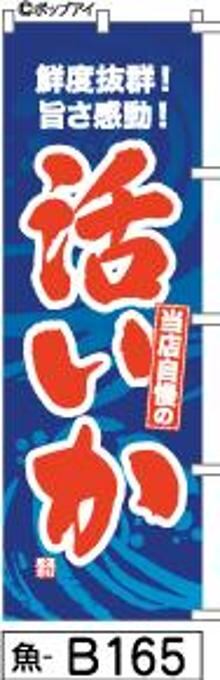 「のぼり【活きいか】青に赤の筆文字[魚B165](商標登録番号6807113)」
