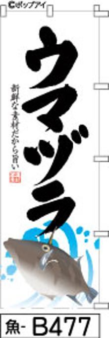 「のぼり【ウマヅラ】白に黒の筆文字[魚B477](商標登録番号6807113)」