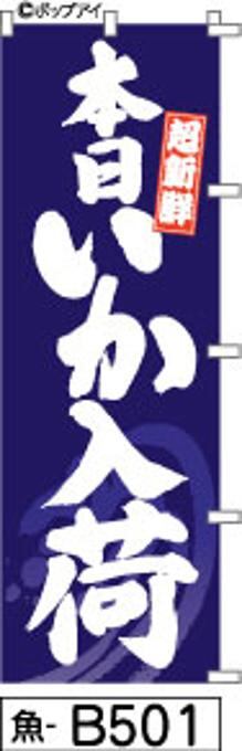 「のぼり 【本日いか入荷】 紺に白抜き筆文字 [魚B501](商標登録番号6807113)」