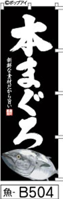 「のぼり【本まぐろ】黒に白抜き筆文字[魚B504](商標登録番号6807113)」