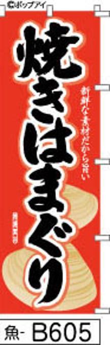 「のぼり【焼きはまぐり】赤に黒の筆文字[魚B605](商標登録番号6807113)」