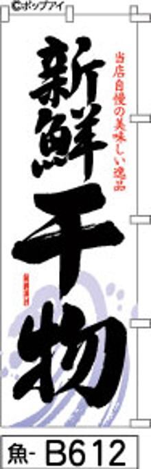 【新鮮干物】のぼり旗|送料無料 目立つ手書き筆文字[b612]白に黒