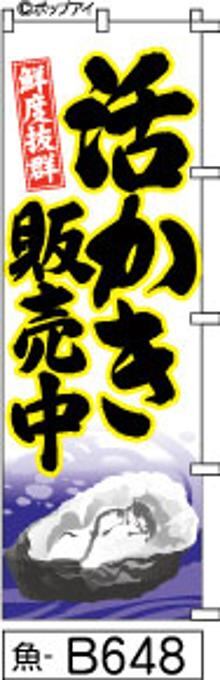 「のぼり【活きかき販売中】白に黒の筆文字[魚B648](商標登録番号6807113)」