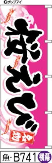 「横幕【桜えび】ピンクに黒の筆文字[魚B741](商標登録番号6807113)」
