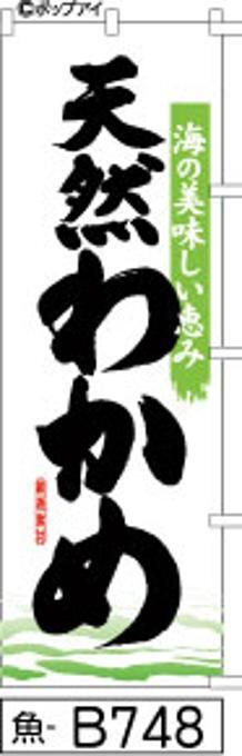 のぼり【天然わかめ】白地にきれいな緑の波の絵黒筆文字[魚B748](商標登録番号6807113)