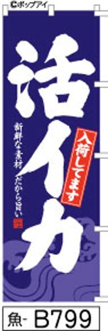 【活きイカ】のぼり旗|送料無料 目立つ手書き筆文字[b799]紺に白抜き