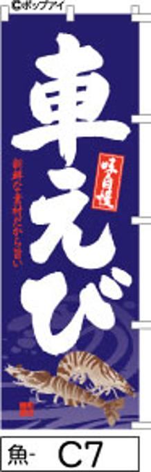 「のぼり【車えび】紺に白抜き筆文字[魚C007](商標登録番号6807113)」