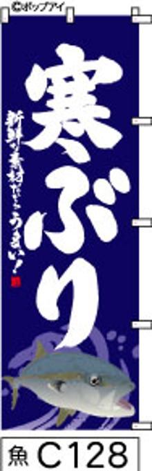 「のぼり【寒ぶり】青の白抜き手書きの筆文字[魚C128](商標登録番号6807113)」