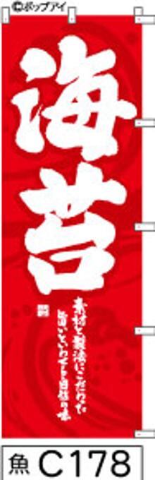「のぼり【海苔】赤の荒波と白の筆文字[魚C178](商標登録番号6807113)