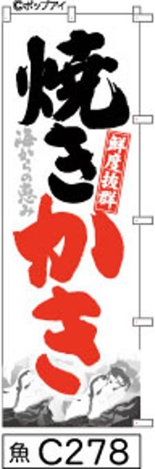 「のぼり【焼きかき】白地に赤と黒の手書き筆文字[魚C278](商標登録番号6807113)」