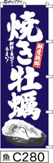 「焼き牡蠣 のぼり【焼き牡蠣】紺の白抜き手書き筆文字[魚C280](商標登録番号6807113)」