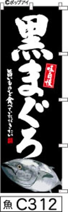 「のぼり【黒まぐろ】黒に白抜き手書き筆文字[魚C312](商標登録番号6807113)」