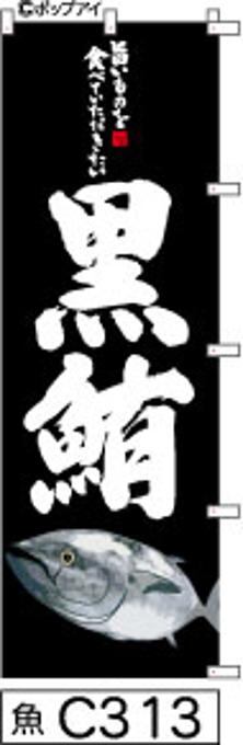 商品名:のぼり【黒鮪】黒に白抜き手書き筆文字[魚C313](商標登録番号6807113)