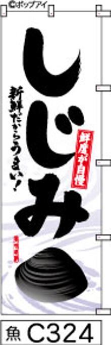 「のぼり【しじみ】白地に波黒の手書き筆文字[魚C324](商標登録番号6807113)」