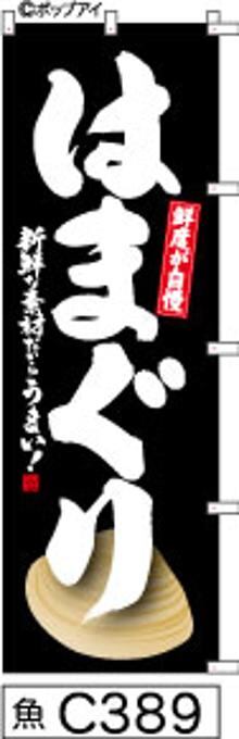 「のぼり【はまぐり】黒の白抜き手書き筆文字[魚C389](商標登録番号6807113)」