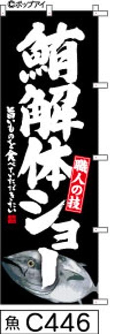 - 商品名:のぼり【鮪解体ショー】黒の白抜き手書き筆文字[魚C446](商標登録番号6807113)