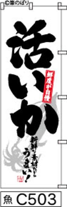「のぼり【活きいか】白地に黒の手書き筆文字[魚C503](商標登録番号6807113)」