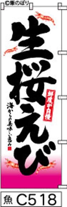 「のぼり【生桜えび】白地にピンク黒の手書き筆文字[魚C518](商標登録番号6807113)」