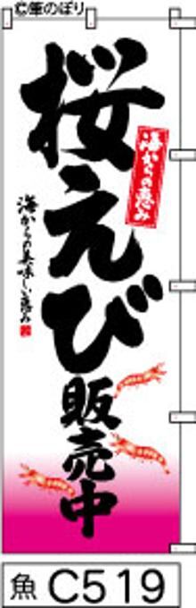 「のぼり 桜えび販売中 白地にピンク黒の手書き筆文字[魚C519](商標登録番号6807113)」