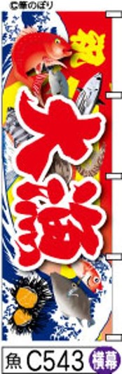 「のぼり横幕【大漁旗】赤の手書き筆文字[魚C543](商標登録番号6807113)」