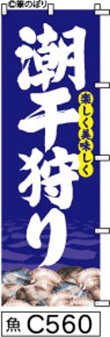商品名:のぼり【潮干狩り】紺の白抜き手書き筆文字[魚C560](商標登録番号6807113)