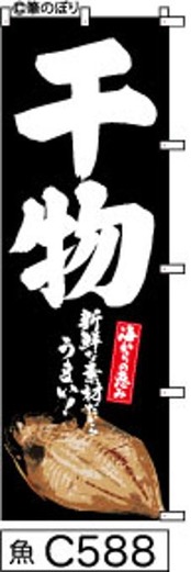 「のぼり【干物】黒の白抜き手書き筆文字[魚C588](商標登録番号6807113)」