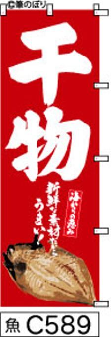 「のぼり【干物】赤の白抜き手書き筆文字[魚C589](商標登録番号6807113)」
