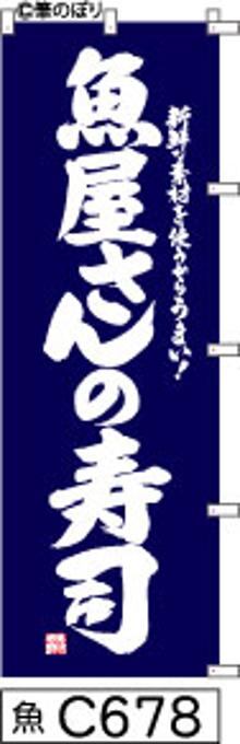 「のぼり【魚屋さんの寿司】紺の白抜き手書き筆文字[魚C678](商標登録番号6807113)」