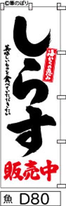 「のぼり【しらす】白地に黒の手書き筆文字[魚D080](商標登録番号6807113)」