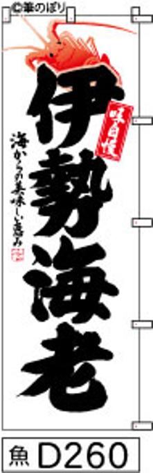 商品名:のぼり【伊勢海老】白地に黒の手書き筆文字[魚D260](商標登録番号6807113)