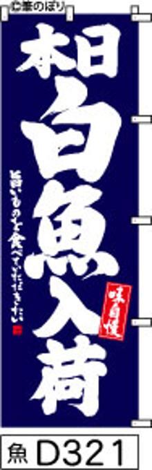 「のぼり【本日白魚入荷】紺の白抜き手書き筆文字[魚D321](商標登録番号6807113)」