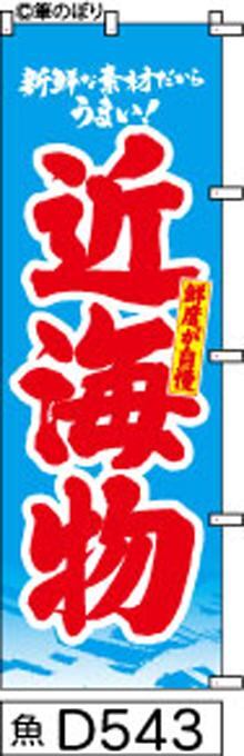 商品名:のぼり【近海物】水色に赤の手書き筆文字[魚D543](商標登録番号6807113)