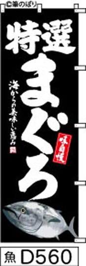 「のぼり【特選まぐろ】黒の白抜き手書き筆文字[魚D560](商標登録番号6807113)」