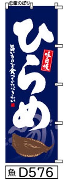 【ひらめ】のぼり旗|送料無料 目立つ手書き筆文字[d576]紺白抜き