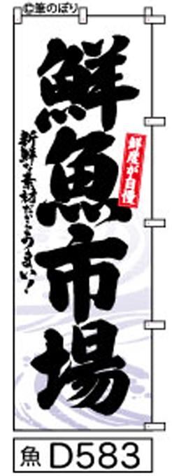 「のぼり【鮮魚市場】白地に黒の手書き筆文字[魚D583] 商標登録番号6807113
