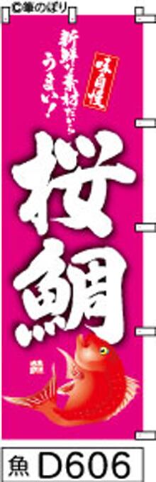 「のぼり【桜鯛】ピンクの白抜き手書き筆文字[魚D606](商標登録番号6807113)」