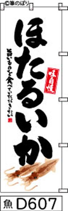 「のぼり【ほたるいか】白地に黒の手書き筆文字[魚D607](商標登録番号6807113)」