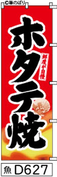 「のぼり【ホタテ焼き】赤に黒の手書き筆文字[魚D627](商標登録番号6807113)」