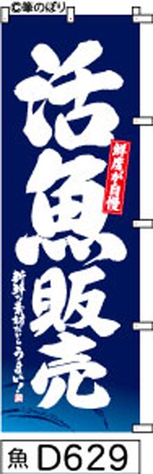 「のぼり【活魚販売】紺の白抜き手書き筆文字[魚D629]」