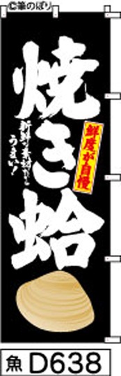 「のぼり【焼き蛤】黒の白抜き手書き筆文字[魚D638](商標登録番号6807113)」
