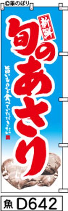 「のぼり【旬のあさり】水色に赤の手書き筆文字[魚D642](商標登録番号6807113)」