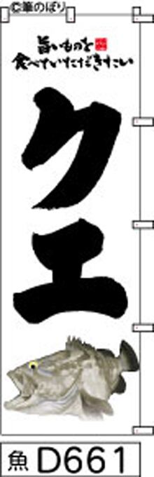 「のぼり【クエ】白地に黒の手書き筆文字[魚D661](商標登録番号6807113)