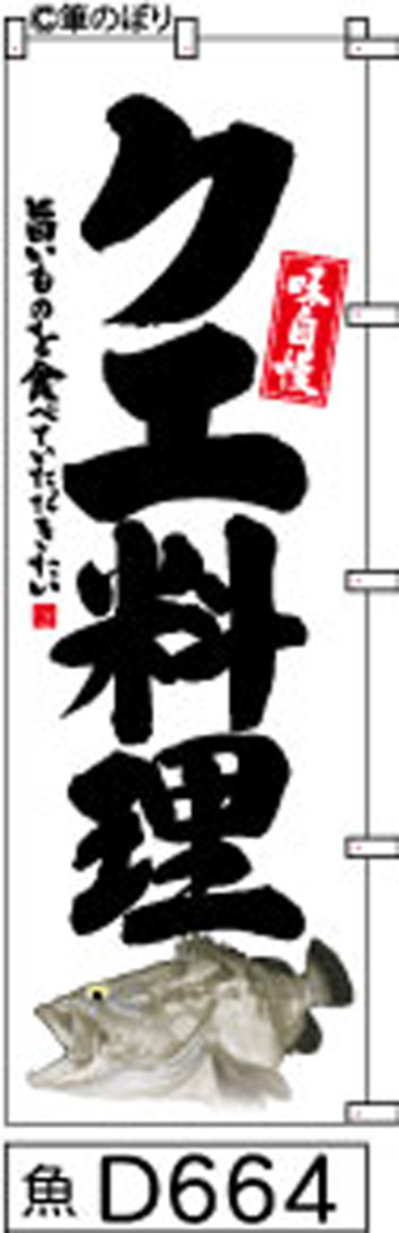 「のぼり【クエ料理】白地に黒の手書き筆文字[魚D664]」