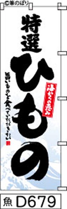「のぼり【ひもの】白地に黒の手書き筆文字[魚D679](商標登録番号6807113)」