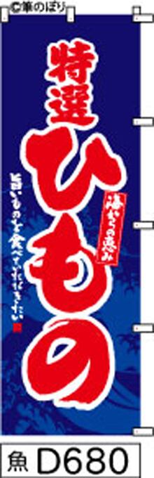 「のぼり【ひもの】紺に赤の手書き筆文字[魚D680](商標登録番号6807113)」