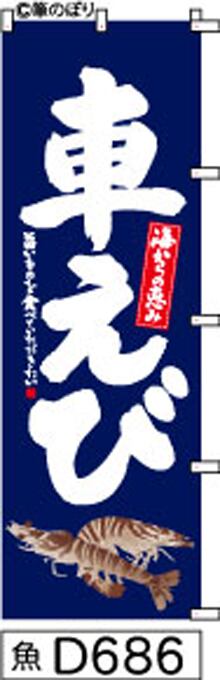 「のぼり【車えび】紺の白抜き手書き筆文字[魚D686](商標登録番号6807113)」