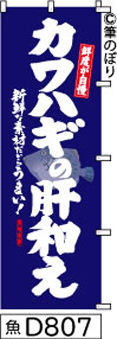 「のぼり【カワハギ 肝和え 青の白抜き】手書き筆文字[d807](商標登録番号6807113)『受注生産』」
